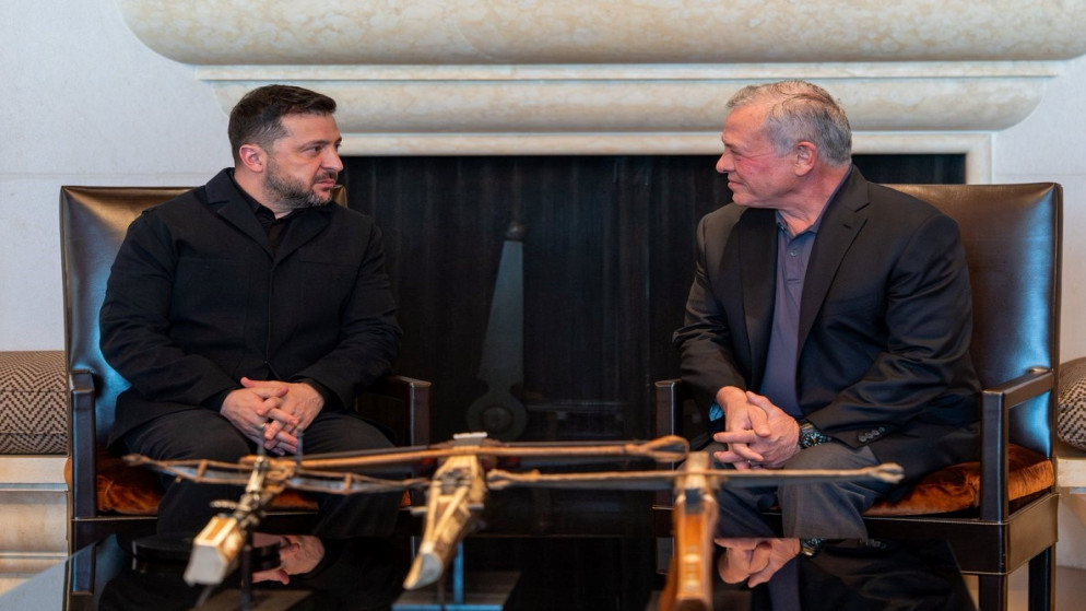 استقبل جلالة الملك عبد الله الثاني الرئيس الأوكراني فولوديمير زيلينسكي، حيث جرى بحث التطورات التي تشهدها المنطقة.وجدد جلالة الملك إدانته ...