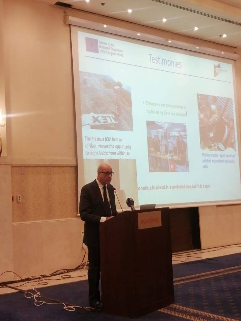 بدوره استعرض مدير مكتب إيراسموس بلس الوطني الدكتور أحمد أبو الهيجاء أثر البرنامج في مرحلته الأولى (2014-2020م)، وحجم التعاون الأوروبي-الأردني في مجال التعليم العالي، حيث مكّن البرنامج المؤسسات التعليمية الأردنية من التعاون مع المؤسسات النظيرة لها في 30 دولة أوروبية، وأكثر من 5700 منحة تبادل تم توفيرها للعاملين والطلبة، وشدّد مدير مكتب إيراسموس بلس الوطني على مساهمة برنامج إيراسموس بلس في إعادة هيكلة مكاتب العلاقات الدولية، وتحسين جودة التعليم، من خلال تبادل الخبرات مع الشركاء الأوروبيين في مختلف المؤسسات، وذلك بالإضافة إلى تعزيز قدرات الريادة والابتكار والابداع لدى المشاركين من الطلبة والعاملين.