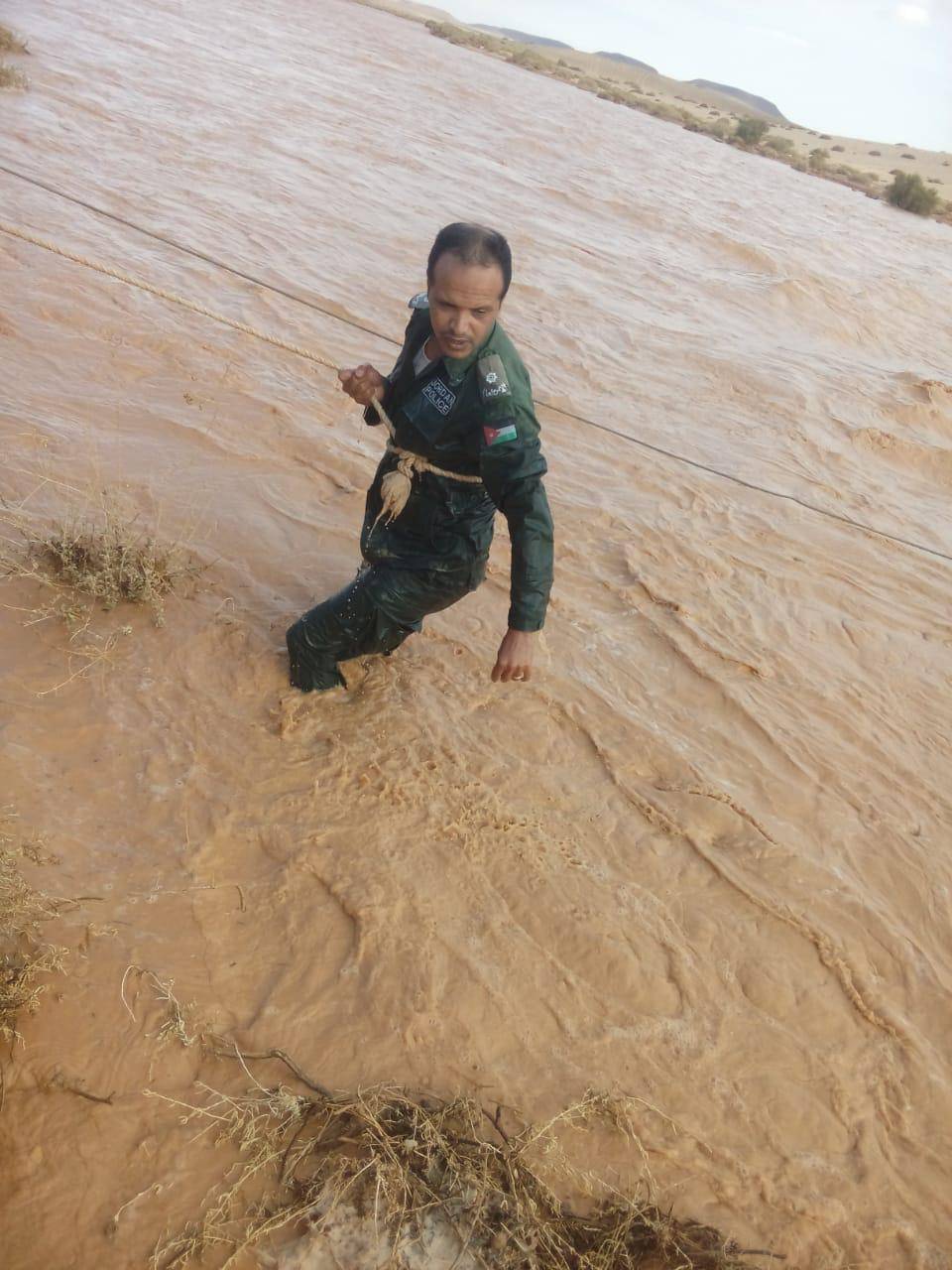 قال الناطق الاعلامي باسم مديرية الامن العام ان بلاغا ورد لوحده لسرايا الهجانة التابعة لقيادة شرطة البادية الملكية حول محاصرة اربع اشخاص من جنسية عربية داخل مركبتهم التي انقلبت جراء ارتفاع منسوب المياه في منطقة وادي راجل / الازرق ليتم التحرك للمكان وتم انقاذ الاشخاص الاربعة رغم خطورة المكان ووعورته وهم بصحة جيدة .