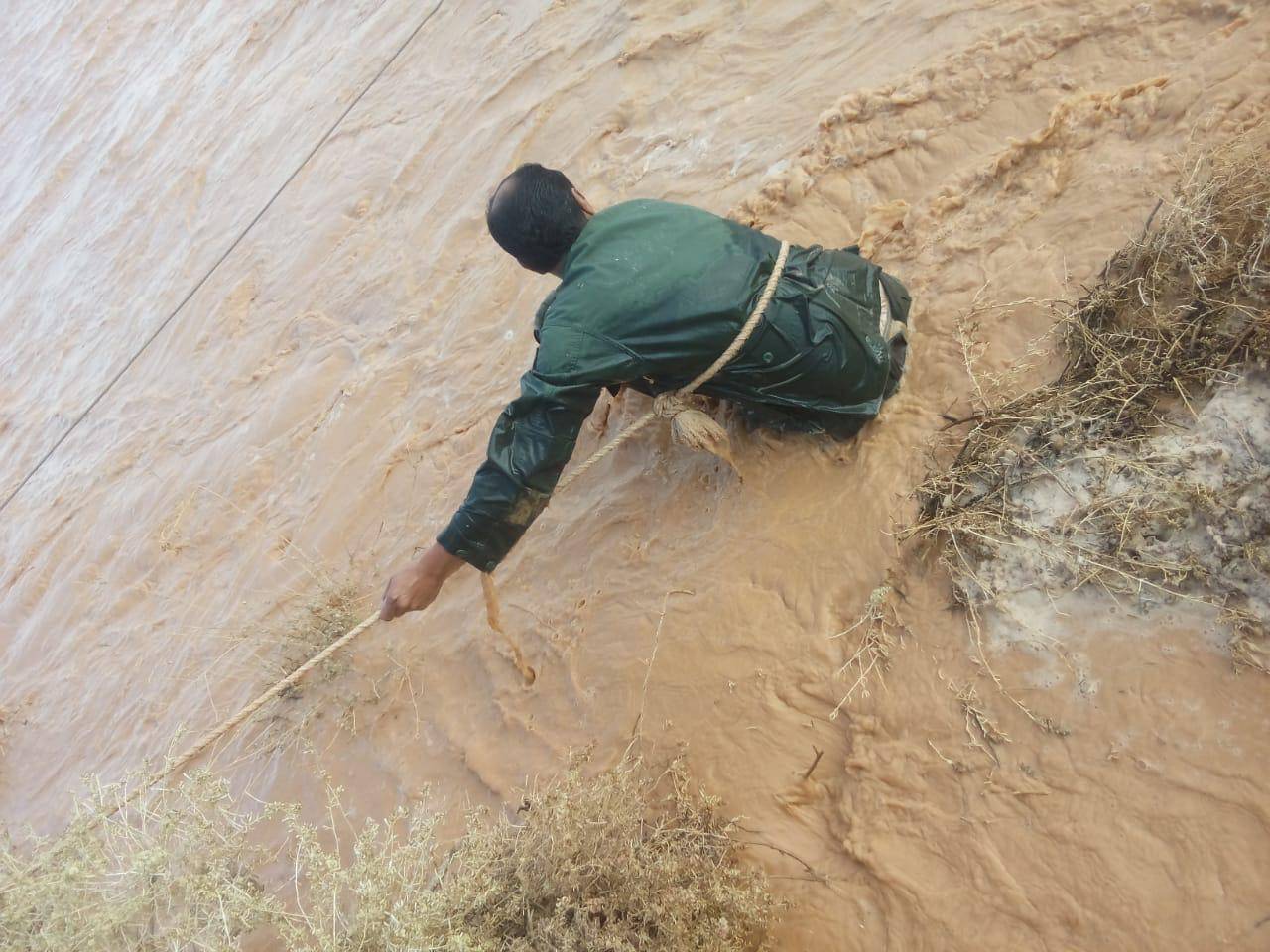 انقاذ ٤ أشخاص حاصرتهم مياة السيول بوادي راجل(صور)