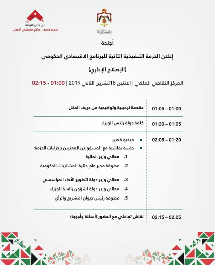 إعلان الحزمة التنفيذية الثانية للبرنامج الاقتصادي الحكومي (الإصلاح الإداري)