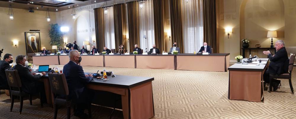 التقى جلالة الملك عبدالله الثاني رئيس مجلس الأعيان ورؤساء اللجان بالمجلس في قصر الحسينية.