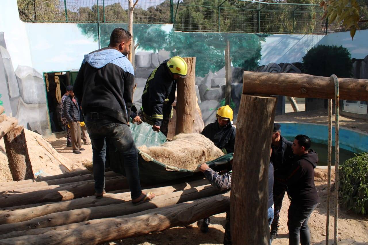 الدفاع المدني يساعد بنقل دب لإجراء عملية جراحية له في حديقة غمدان للحيوانات