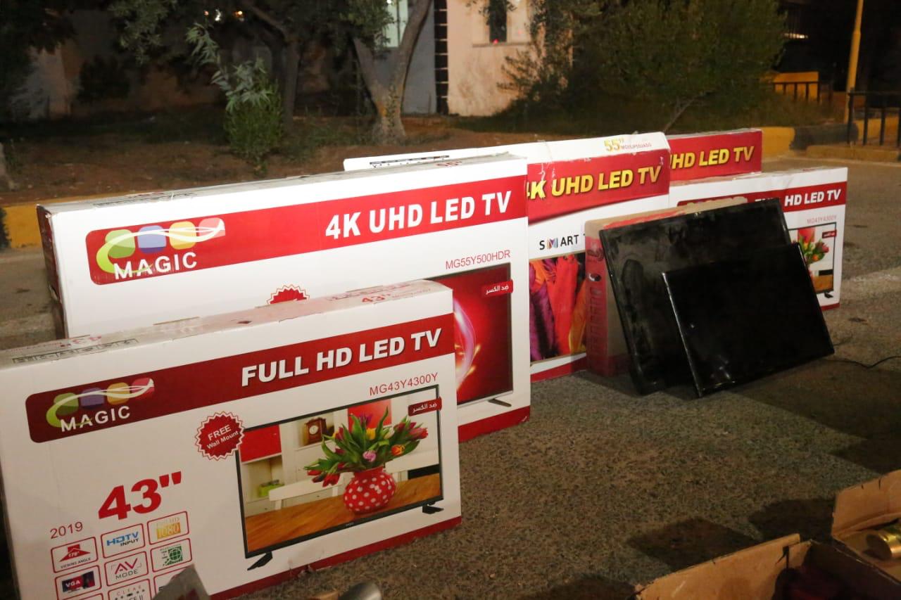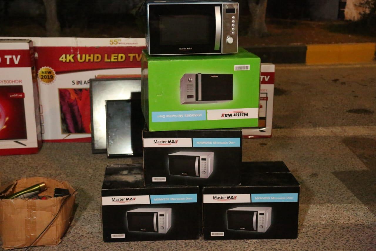 وتابع الناطق الإعلامي أنه ومن خلال التحقيقات مع الشخصين المقبوض عليهما جرى ضبط الـ ٣٠ شاشة التي تمت سرقتها من محل بيع الأجهزة الكهربائية في منطقة حطين بعد أن أُخفيت في منزل احدهما ، بالإضافة لمجموعة كبيرة من الأجهزة الكهربائية والمواد التموينية والمسروقات الأخرى التي تمت سرقتها من عدة محال تجارية ، وما زال التحقيق والبحث جار عن الشريك الثالث .