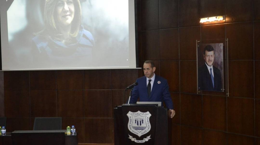 وبدأ الحفل الذي أقيم في مدرج نزار قباني بالوقوف دقيقة صمت تكريماً لروح الشهيدة، تلاها كلمة لرئيس الجامعة الذي استعرض حجم المصاب والدور الأردني بقيادة جلالة الملك عبدالله الثاني في دعم صمود الشعب الفلسطيني امام ممارسات جيش الاحتلال ومحاولات تكميم الأفواه كما حصل في حادثة اغتيال الشهيدة أبو عاقلة.