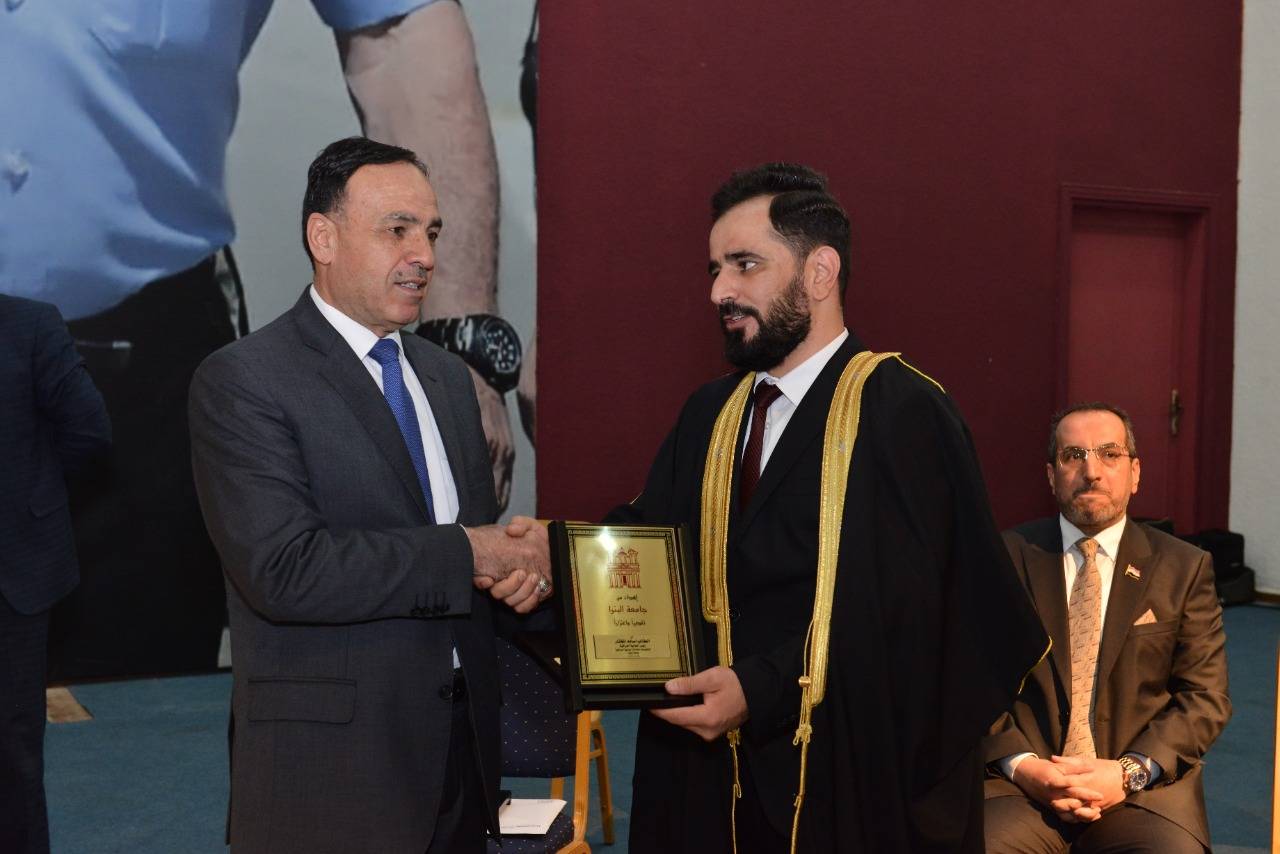 قال المستشار الثقافي العراقي الدكتور وسيم التميمي "هذه ثمرة حان موعد حصادها لبذرة زرعت قبل عقدين من الزمان تقريبا وقد سقاها الوالدين برعايتهم وتحملت بجهودكم ظروف متعددة بقيت في ذاكرتكم، استذكروا مفردات قسم التخرج وأخلاقيات المهنة والأمانة العلمية عند أداء مهامكم واجتهدوا في مجال البحث العلمي والمشاريع المهنية لتجعلوا من تحصيلكم العلمي بصمة عملية ذات أثر واضح ومتميز في حياتكم ومسيرة بلدكم، ولا تنسوا الوفاء لوالديكم والوفاء لوطنكم العراق الغالي والوفاء لمن أستضافكم وساهم في تعليمكم المملكة الأردنية الهاشمية وقيادتها وجامعة البترا ورئاستها وأساتذتكم عبر مراحل الدراسة المختلفة.