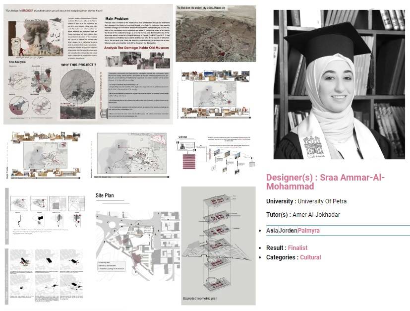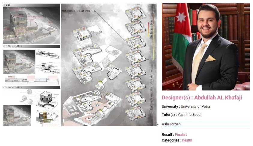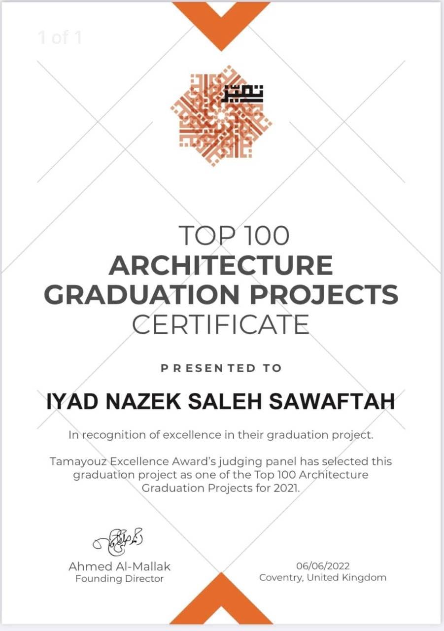 أدرجت جائزة "تميز" ثلاثة مشاريع تخرج لطلبة قسم هندسة العمارة بجامعة البترا ضمن "قائمة أفضل 100 مشروع تخرج للعام 2021 على مستوى العالم". وتضمنت جائزة "تميز لمشاريع التخرج المعمارية العالمية"، مشروع "الجنة المخفية" للمهندس إياد صوافطة بإشراف الدكتورة هدير مرزه، ومشروع "مركز أبحاث وسيطرة للأوبئة" للمهندس عبد الله الخفاجي بإشراف المهندسة ياسمين السعودي، ومشروع "متحف تدمر" للمهندسة سرا عمار بإشراف الدكتور عامر الجوخدار.