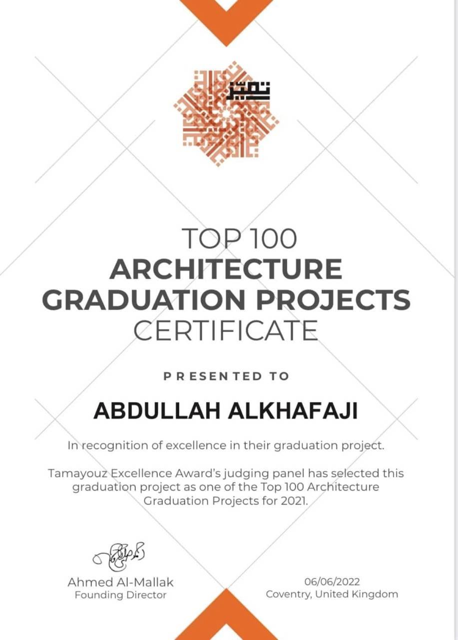 يذكر أن جائزة تميز قد أطلقت مؤخرًا "منصة أفضل مشاريع التخرج في العالم" كجزء من جهودها لتسليط الضوء على العمل الممتاز الذي قام به طلاب العمارة في جميع أنحاء العالم، وهي قاعدة بيانات تعرض بشكل دائم أفضل 100 مشروع يتم تقديمها سنويًا إلى جائزة تميز لمشاريع التخرج المعمارية.