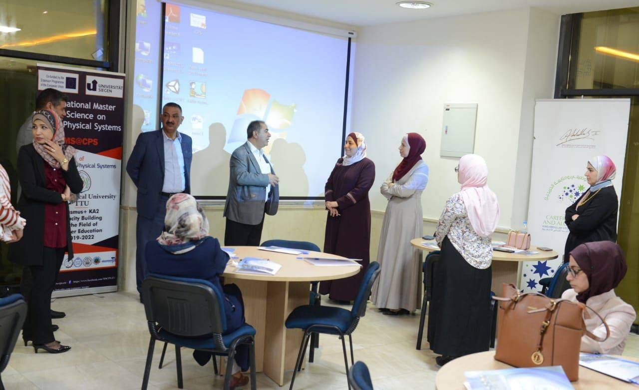 جاء ذلك خلال لقاء الدكتور المعايطة بأعضاء جمعية رابطة الأكاديميات الأردنيات، ممثلة بكل من الدكتورة آيات نشوان، الدكتورة مريم العمري، والدكتورة جنان شتيات في الورشة التدريبية التي نظمتها عمادة شؤون الطلبة- مكتب التأهيل الوظيفي بالتعاون مع جمعية رابطة الأكاديميات في الأردن ، بحضور عميد شؤون الطلبة الدكتور محمد المحاسنة ونائب العميد منسقة اللقاء الدكتورة سبأ الكساسبة، بمشاركة (15) أكاديمية، لجهة تعريف الأكاديميات بالمشاريع الممولة دولياً وأهداف هذه المشاريع وطرق التقديم لها.