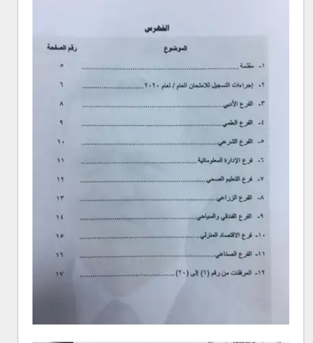 أصدرت وزارة التربية والتعليم دليلا إرشاديا للامتحان العام لعام (2020) خاص بالطلبة المستنفدين حقهم في الأعوام 2005 ولغاية 2017 من الطلبة الذين لم يستكملوا متطلبات النجاح في خمسة مباحث فما دون، وقد احتوى الدليل على المباحث المطلوبة من الطلبة في الامتحان لمختلف الفروع الأكاديمية والمهنية، والمحتوى الدراسي المقرر لهم في كل مبحث، وإجراءات التسجيل للامتحان في الموعد الذي ستحدده الوزارة في ما بعد.