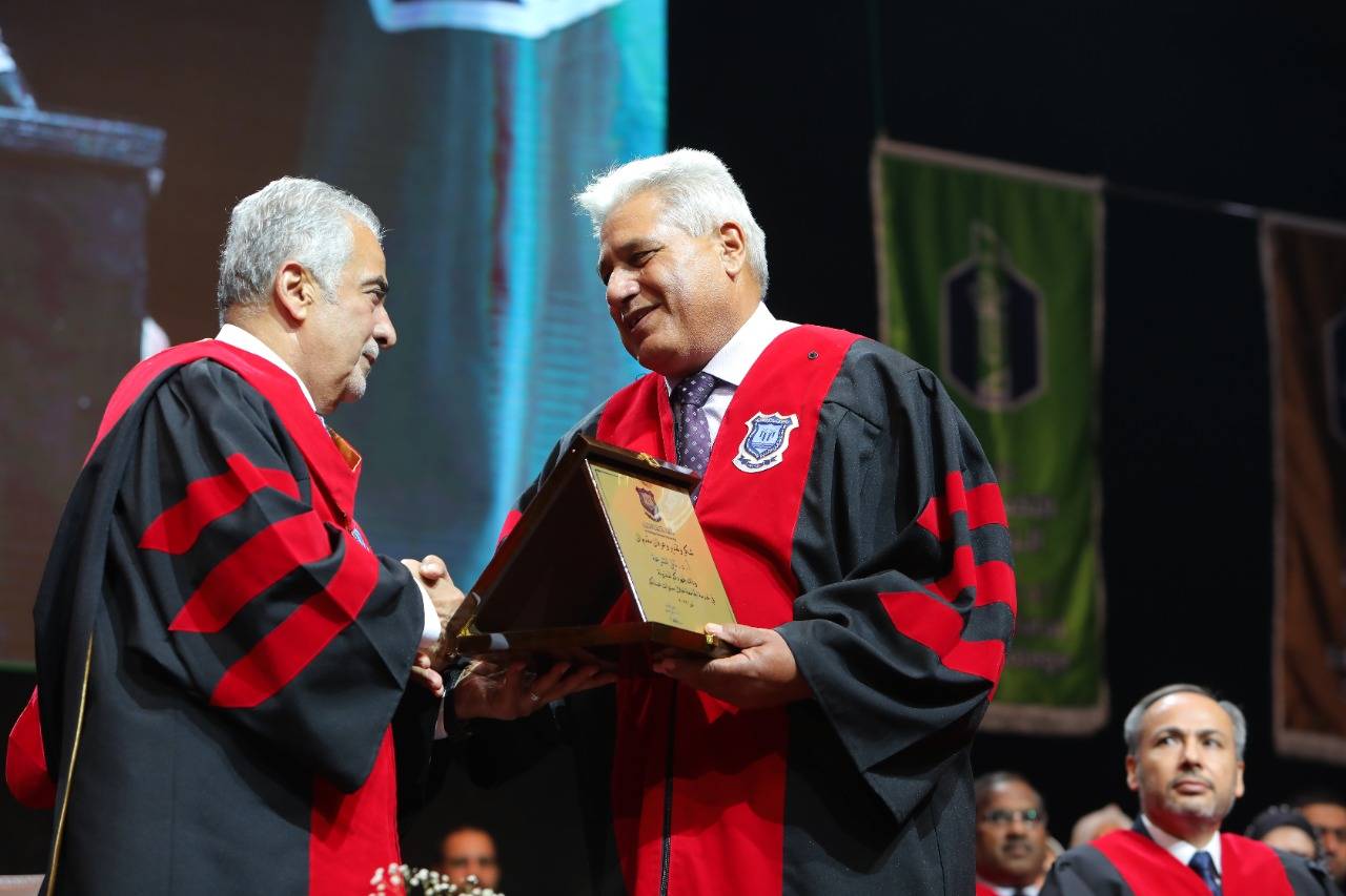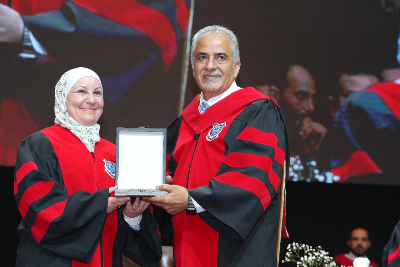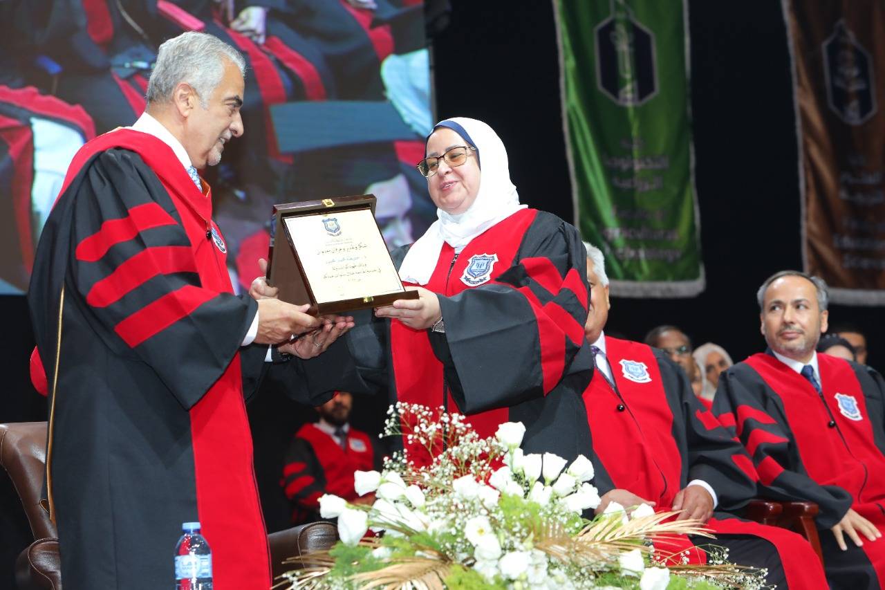•وكرّم أيضا كلّا من : د. حفيظة محمد سعيد والمدرس نعمان خالد النتشة وذلك لجهودهما المبذولة في خدمة الجامعة خلال سنوات عملهما.