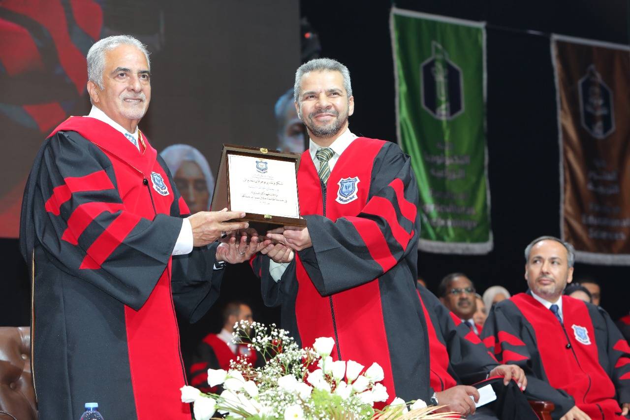•كما قام الاستاذ الدكتورالرئيس بتكريم الباحثين : د. خلدون حمدان ( كلية التمريض ) و د. صبا نصيرات (كلية العمارة والتصميم ) و د. علي الصميدعي (كلية الصيدلة) و المدرسة آية خلف (كلية الآداب والعلوم) نظرا لجهودهم المتميزة في مجال البحث العلمي .