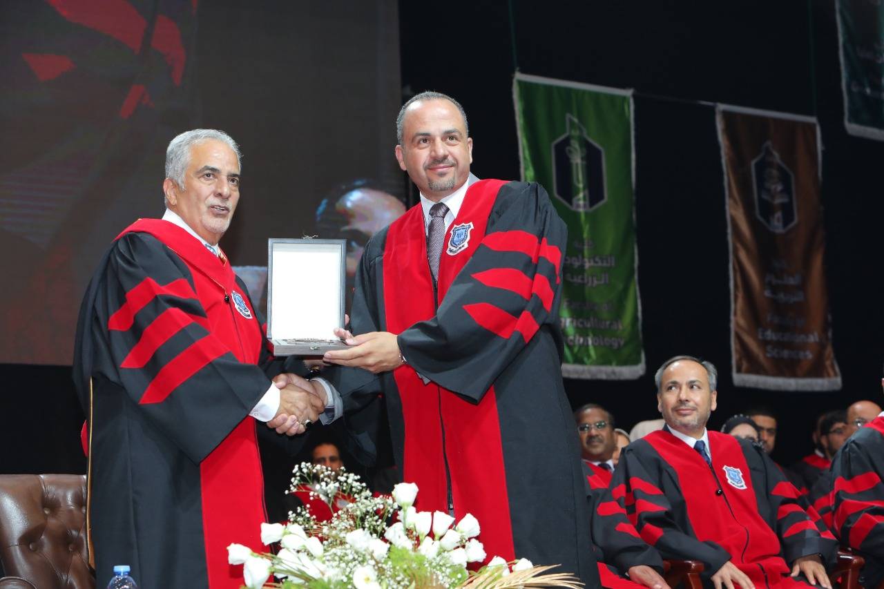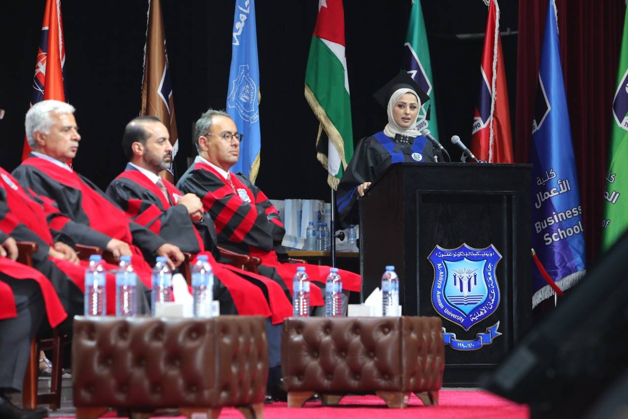وخاطب الخريجين بالقول : أيها الخريجون لقد استحققتم ان تعيشوا هذا اليوم الجميل برفقه ذويكم، من واصلوا الليل بالنهار وبذلوا الغالي والنفيس في سبيل الوصول الى هذه اللحظة فمبارك لكم ومبارك لهم على عطائهم مثمنين ومقدرين اختياركم لجامعة عمان الأهلية طريقاً لمستقبل ابنائكم ومؤكداً بأن الجامعة ستبقي تحمل راية التميز والابداع.
