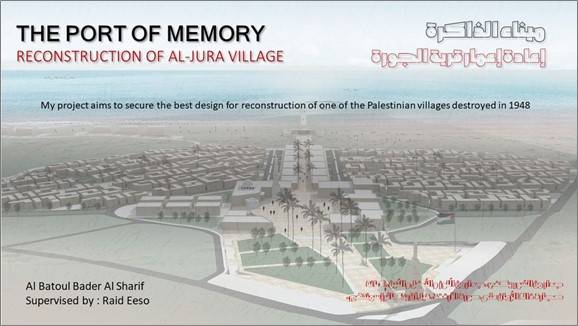 وتأهل مشروع تخرج الطالبة البتول الشريف لإعادة إعمار قرية الجورة بعنوان "ميناء الذاكرة"، بإشراف المهندس رعد عيسوه، إلى المرحلة النهائية، وحصل على مرتبة الشرف كواحد من أفضل ستة مشاريع متأهلة من بين ما يزيد عن 40 مشروعًا مشاركًا.