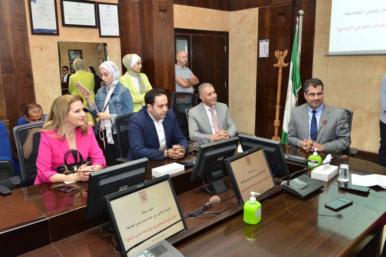 وأعرب عبد الرحيم عن تقديره لجهود المدربين "الذين تبرعوا بوقتهم وخبراتهم وجهودهم لتقديم الفائدة للطلبة"، معربًا عن شكره للإعلاميين إيمان ظاظا للتطوع في تقديم محور "الاعداد للبرامج الاذاعيه والتلفزيونية"، ورندا عازر من قناة رؤيا للتطوع في تقديم محور "تقديم البرامج الحواريه"، ورئيسة الملتقى الثقافي للمكفوفين سهير عبد القادر صاحبة الخبرة في إذاعة الأمن العام سابقًا للتطوع في تقديم محور " تقديم البرامج الاذاعية"، وزهير عبدالقادر من الوكالة الالمانية DW للتطوع في تقديم محور " تقديم البرامج الاذاعية"، وعامر الرجوب من قناة المملكة، للتطوع في تقديم محور "التقديم التلفزيوني"، وإلى نداء جودة.