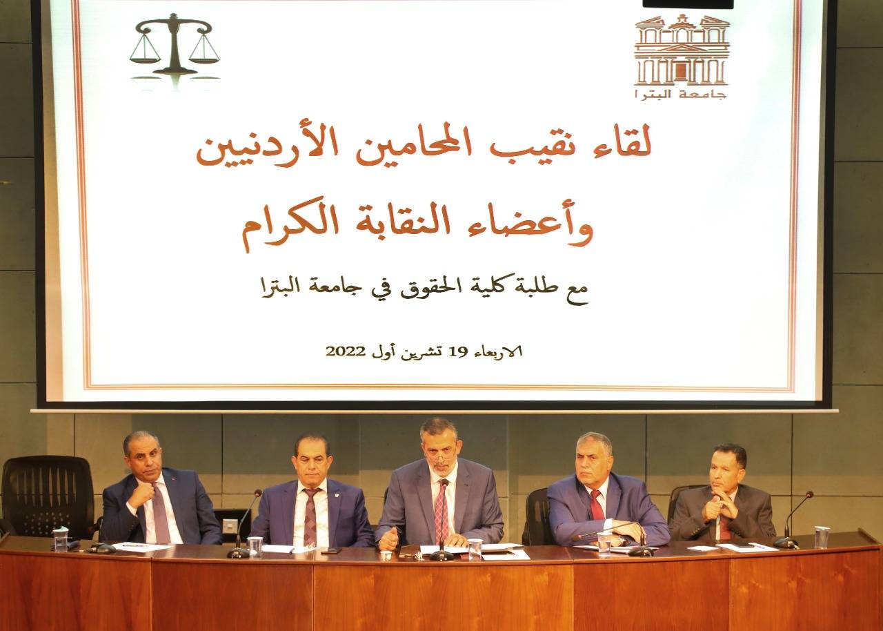 نقيب المحامين الأردنيين يلتقي طلبة كلية الحقوق في جامعة البترا