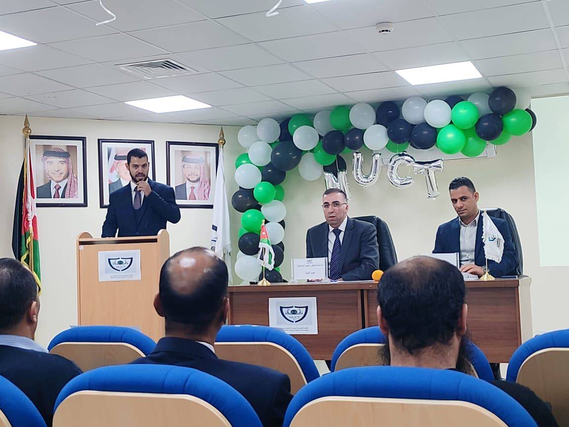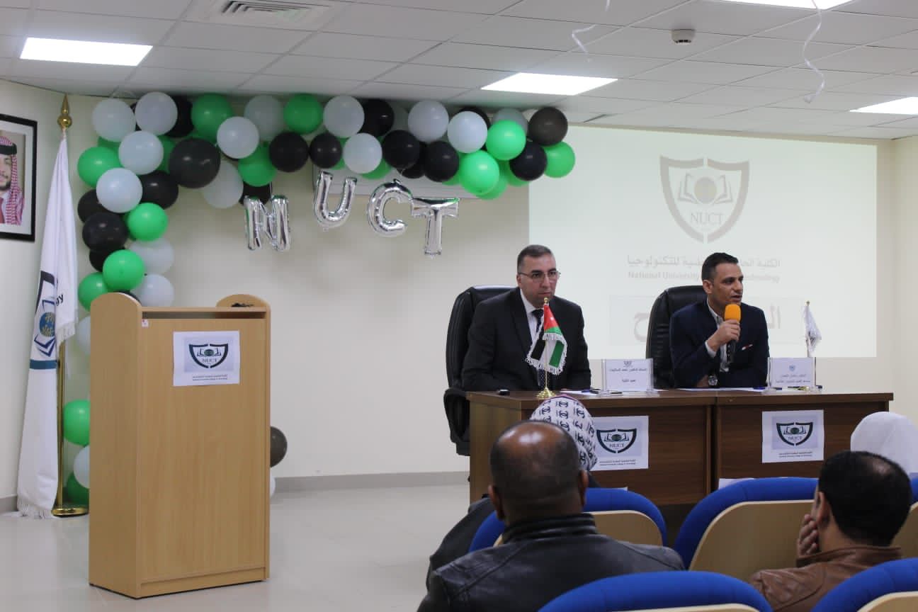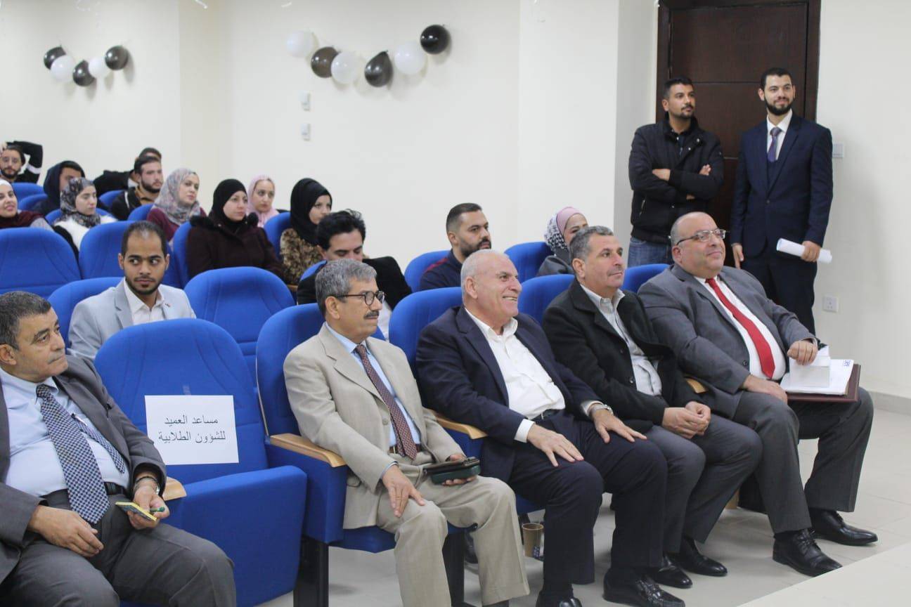 وكان الدكتور سفيان الليمون مساعد العميد للشؤون الطلابية قام بالترحيب بعميد الكلية الاستاذ الدكتور احمد السلايمة والمستشار حمادة فراعنة والصحفي محمد غنام والطلبة الجدد في الكلية ، وتمت مناقشة القضايا المطروحة من الطلبة .