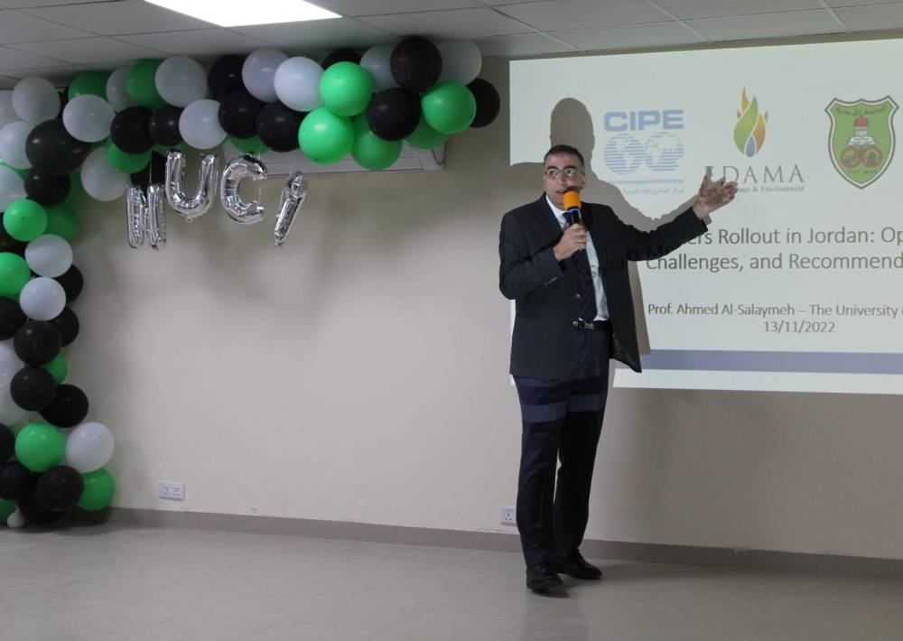 وقدمت الدكتورة ولاء الصمادي مديرة مكتب المشاريع الدولية محاضرة عن تكنولوجيا العدادات الذكية .