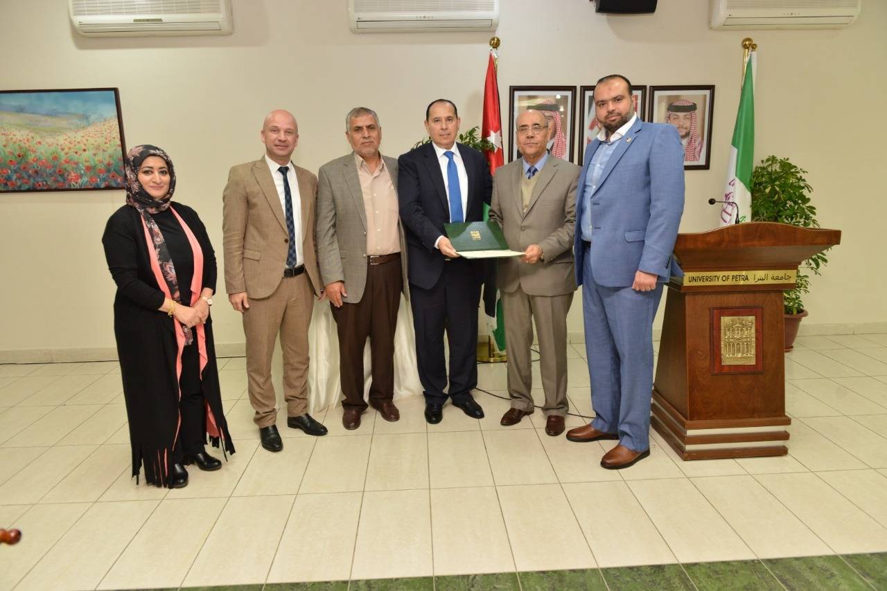 ووزع رئيس جامعة البترا الأستاذ الدكتور رامي عبد الرحيم الدروع التكريمية على المشاركين من جامعة اليرموك وجامعة البترا.