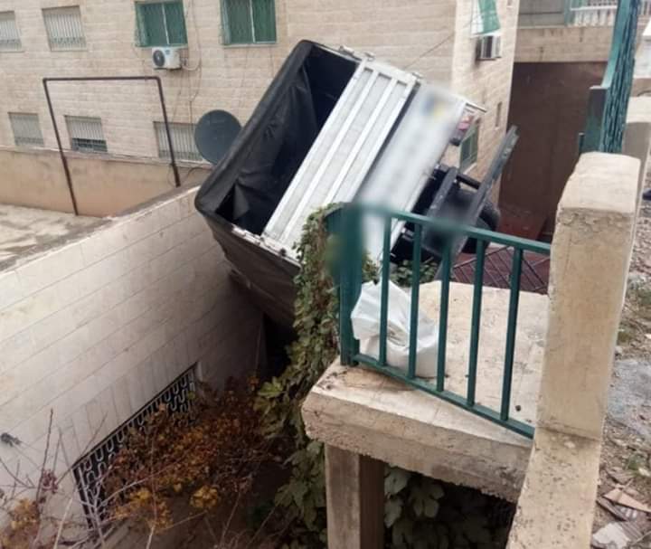 حيث نتج عنه اصابة شخصان وصفت حالتهما العامة بالحسنة، بالاضافة لأضرار بممتلكات خاصة