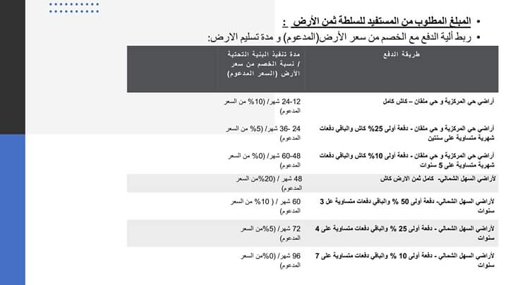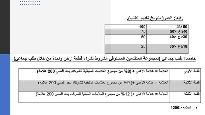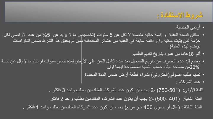الأسس والمعايير لبيع الأراضي ضمن مشروع تملك في العقبة