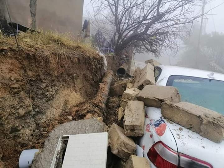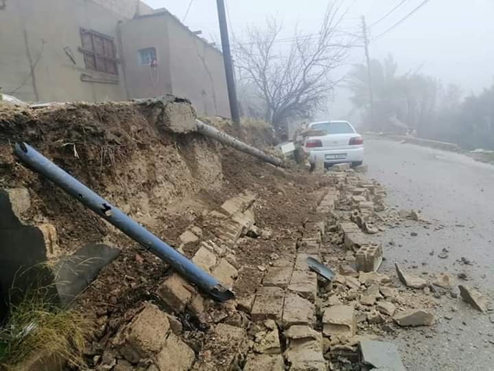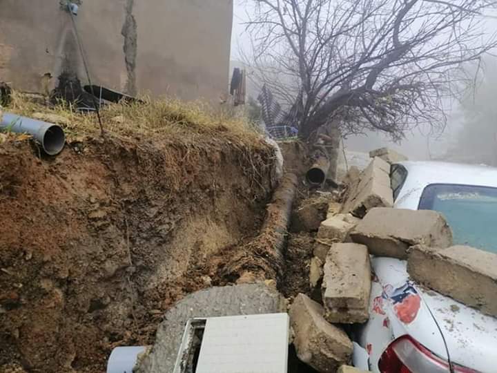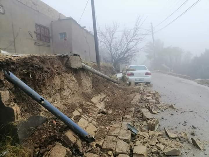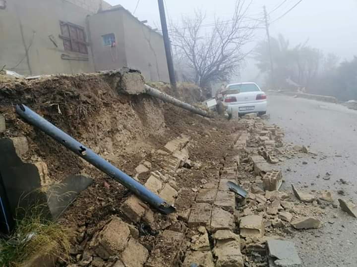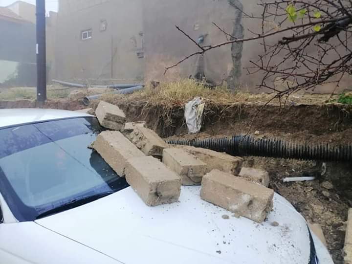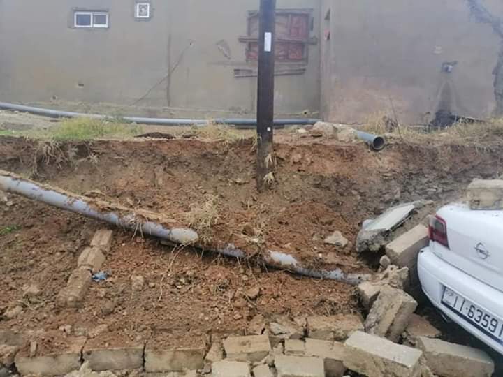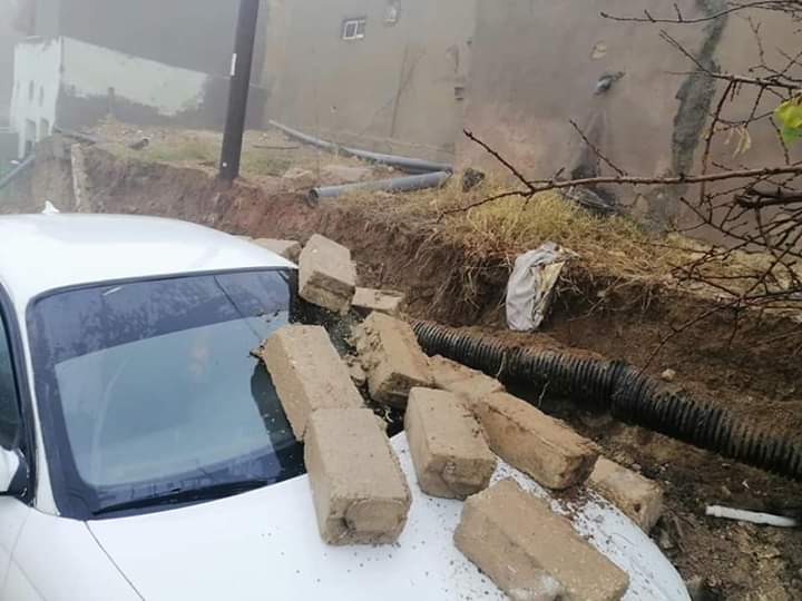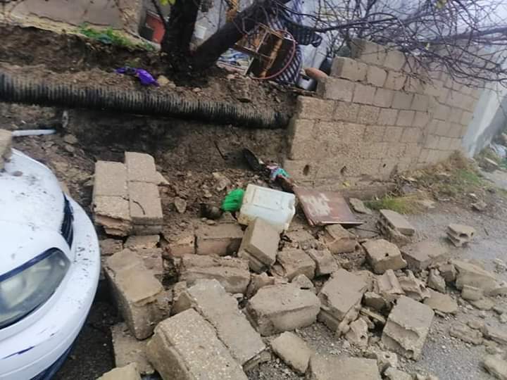 انهار جدار في محافظة الطفيلة نتيجة الأحوال الجوية السائدة وذلك في الشارع الرئيس بجانب مدرسة الشيخ احمد الدباغ، ولا اصابات بشرية.