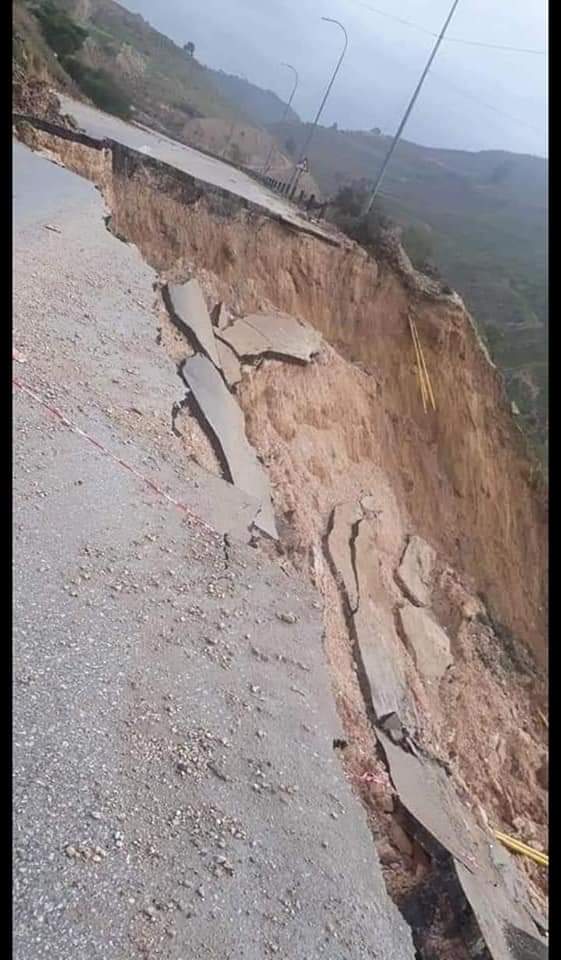 تفاجأ مواطنين المرتادين لطريق المدخل الجنوبي لجرش باغلاقه بسبب انزلاق الكتل الترابية.