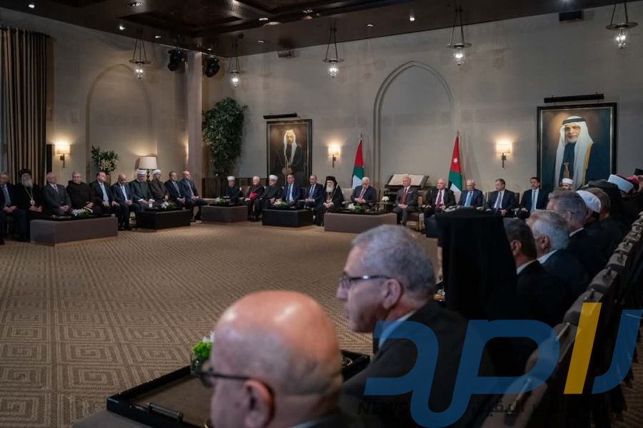 الملك يستقبل ممثلي مجلسي أوقاف وكنائس القدس وشخصيات مقدسية بحضور الرئيس الفلسطيني