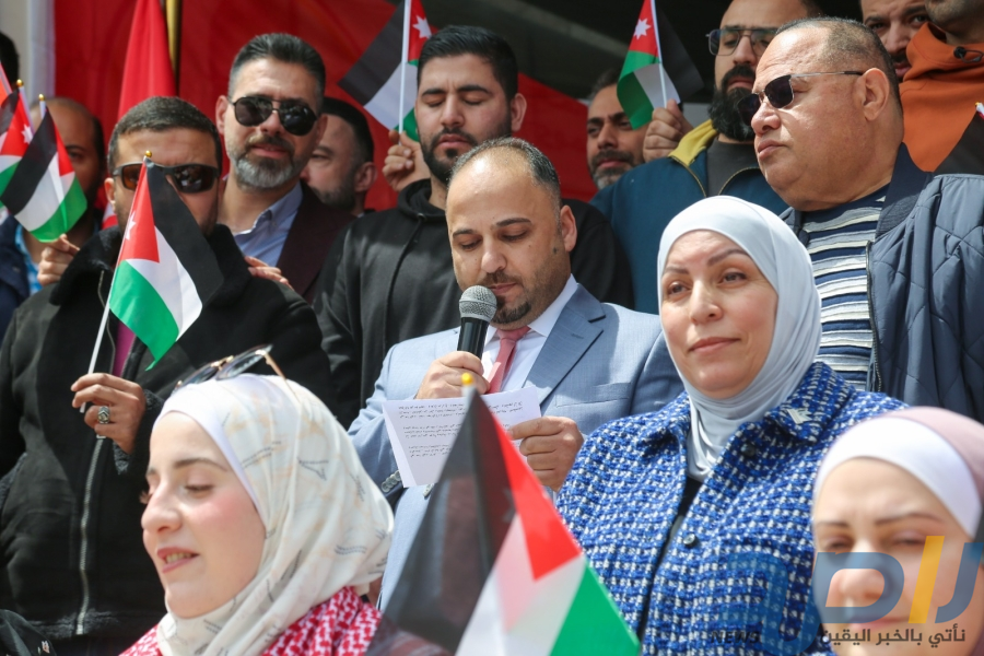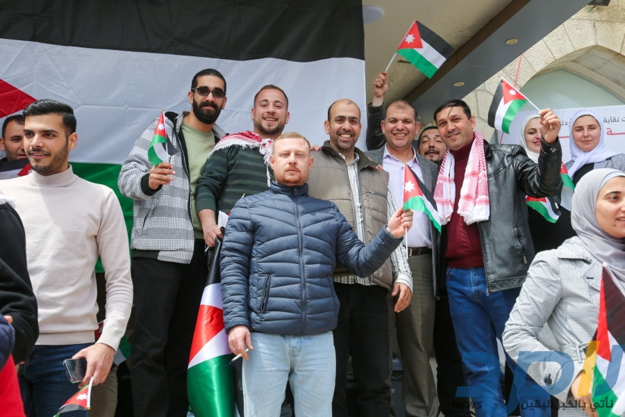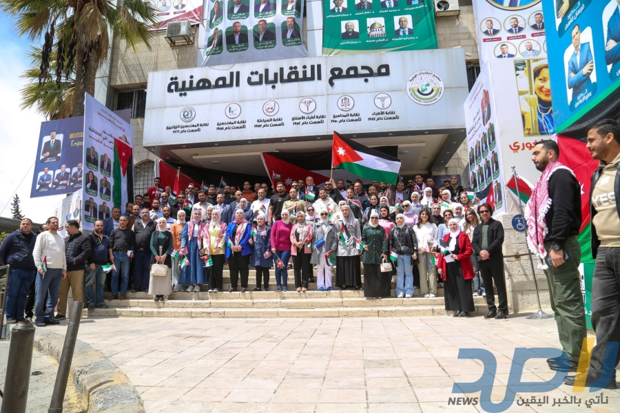 احتفالا بيوم العلم الأردني وتجسيدا للاعتزاز بعلم المملكة الاردنية الهاشمية، رمز الوحدة والسيادة والهوية الوطنية الأسمى، نفذت نقابة المهندسين الأردنيين، اليوم الأربعاء، وقفة تضامنية امام مجمع النقابات المهنية، لموظفي النقابة.