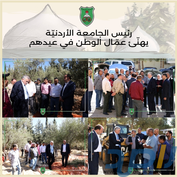 قدّم رئيس الجامعة الأردنيّة الدّكتور نذير عبيدات أحرّ التّهاني والتّبريكات إلى أُسرةِ الجامعة مِن أعضاءِ الهيئتَينِ التّدريسيّة والإداريّة، وإلى جميع العاملين فيها، وإلى عمّالِ الوطن كافّةً كلٍّ في موقِعه، بمناسبةِ عيد العمّال العالَميّ الذي يصادف الأوّلَ مِن أيّار من كلّ عام.