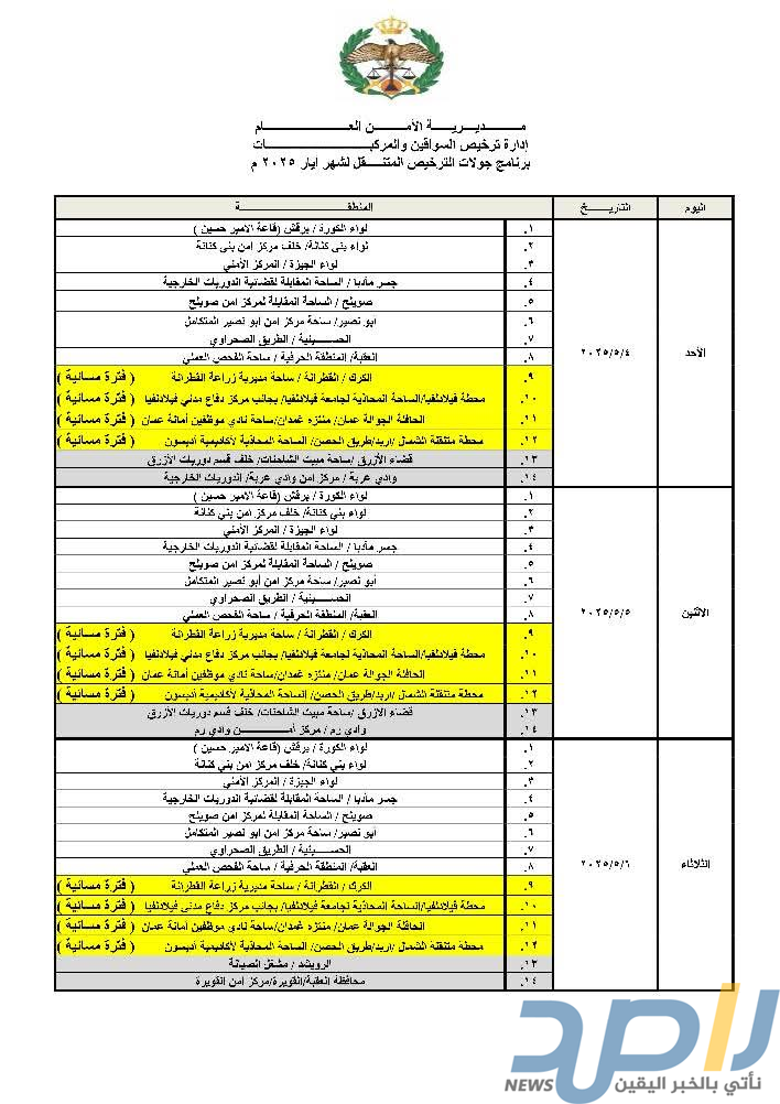 وأشارت مديرية الأمن العام إلى أن برنامج الترخيص المتنقل يُعد جزءًا من خططها التطويرية المستمرة لتعزيز الراحة المجتمعية وتذليل العقبات أمام المواطنين، معربةً عن التزامها بتطوير آليات العمل لتكون أكثر مرونة وقربًا من الجمهور.