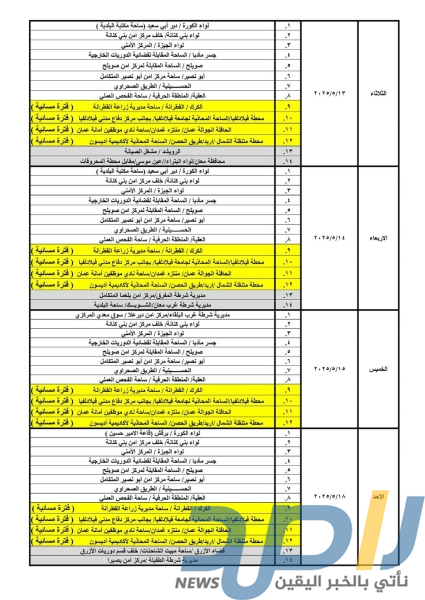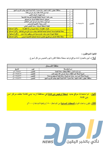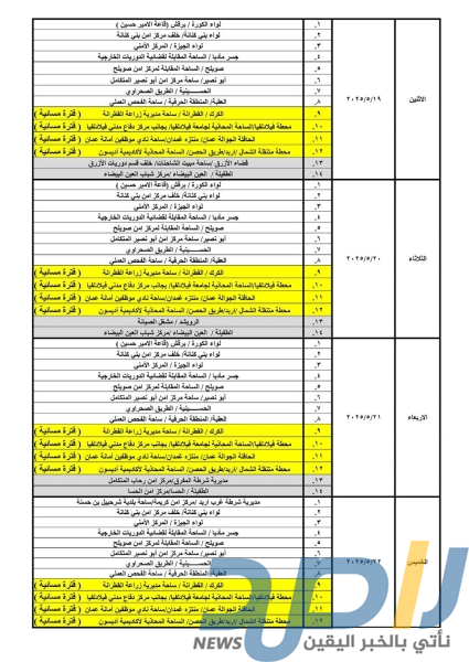 ووفقًا الجدول الذي تم نشر تفاصيل البرنامج عبر صفحات المديرية الرسمية على منصات التواصل الاجتماعي وموقعها الإلكتروني، لتوعية المواطنين بآلية الاستفادة من الخدمة وأماكن تواجد الفرق المتنقلة.