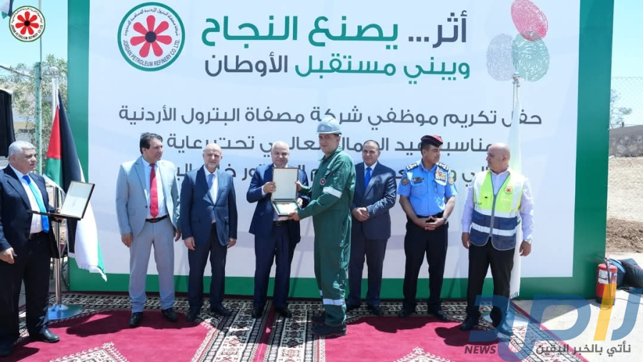 أقامت شركة مصفاة البترول الأردنية احتفالاً بمناسبة عيد العمال، كرّمت خلاله مجموعة من موظفيها المتميزين، وذلك تحت رعاية وزير العمل الدكتور خالد البكار، وبحضور رئيس مجلس إدارة الشركة المهندس عبدالرحيم البقاعي، والرئيس التنفيذي المهندس حسن الحياري، ورئيس النقابة العامة للعاملين بالبترول والكيماويات خالد الزيود، إضافة إلى عدد من الشخصيات الرسمية والنيابية والفعاليات الاقتصادية والنقابية وممثلي المجتمع المحلي.
