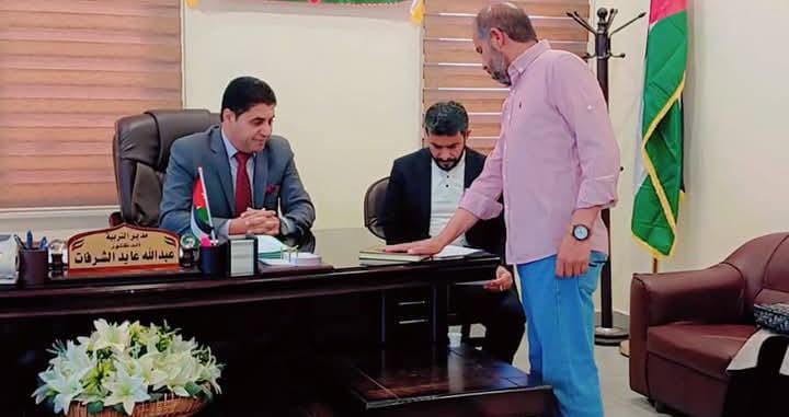 التقى مدير التربية والتعليم لمنطقة البادية الشمالية الشرقية الدكتور عبدالله الشرفات في مكتبه أعضاء لجنة تحكيم جائزة الملك عبدالله الثاني للياقة البدنية بحضور مدير الشؤون التعليمية الدكتور محمد حامد العظامات ، ومدير الشؤون الإدارية والمالية الدكتوره منال الحويدي ، ورئيس قسم النشاطات الاستاذ مهند العظامات.