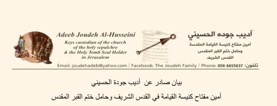 بيان أمين مفتاح كنيسة القيامة يدحض اتهامات ضد الهيئة الخيرية الهاشمية