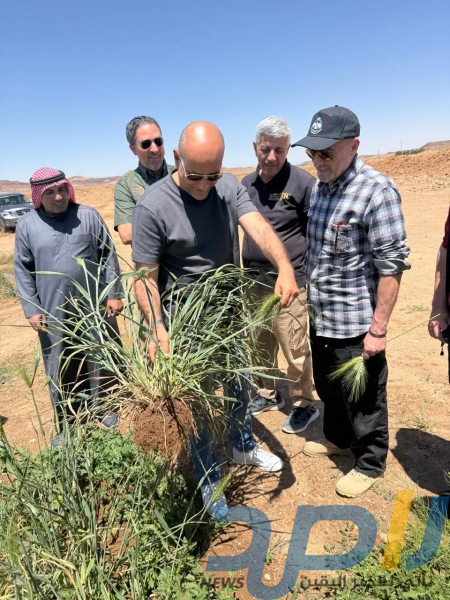 وأشاد الوزير خلال الجولة بالجهود المبذولة بالشراكة مع القطاع الزراعي الخاص الأردني في سبيل وتطوير الزراعة المستدامة الموفرة للمياه ، حيث شهد مع الجميع عن كثب نتائج هذه الزراعات المختلفة خاصة زراعة القمح المطورة التي تعد من الزراعات المتقدمة حيث تم استخدام المواد العضوية المخمرة التي تحسن من نوعية التربة بشكل كبير وواضح مع بذور القمح تم حصادها عدة مرات دون حراثة الأرض او نثر بذور أخرى وكذلك الغزارة في الإنتاج حيث ان كل حبة تنتج عدة سنابل غزيرة الإنتاج إضافة الى استهلاكها بما لايتجاوز 30% فقط من كمية مياه الري المستخدمة في المحاصيل العادية ، وكذلك في زراعة الخضروات والفواكة المختلفة والنتائج المبهرة المتحققة حيث أشاد الجميع خلال الزيارة على مختلف المزروعات والتقنيات الحديثة بالتجارب البحثية التي تم تطبيقها وتطويرها بخبرات اردنية محلية للاستفادة من كفاءة الري وتقيل كميات الري الى نسب كبيرة والحصول على انتاج عالي،.