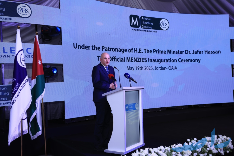 مندوبًا عن دولة رئيس الوزراء الدكتور جعفر حسان، رعى وزير الاستثمار المهندس مثنى غرايبة اليوم حفل افتتاح المنشأة الحديثة والمتطورة التي أنشأتها شركة AHS – Menzies في مطار الملكة علياء الدولي، وذلك بحضور امين عام وزراة النقل فارس ابو دية، وأمين عام وزارة الاستثمار زاهر القطارنه، والسفيرين البريطاني والفرنسي، إلى جانب عدد من كبار المسؤولين وممثلي الجهات الرسمية والخاصة.