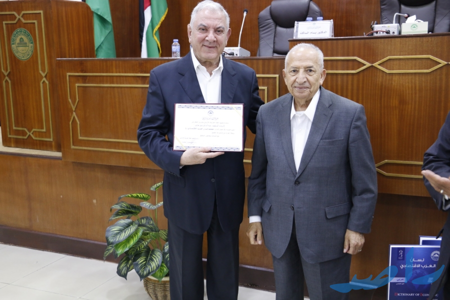 كما كرّم الأستاذ رئيس المجمع صاحب المعجم بشهادة تقديرية تعبّر عن عميق شكر المجمع للدكتور بني هاني على هذا الإنجاز المهم في عالم اللغة والاقتصاد.