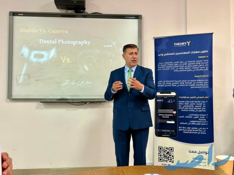 وتناولت الورشة مقارنة تفصيلية بين استخدام الهاتف المحمول والكاميرا الاحترافية في توثيق الحالات السنية. بالاضافة إلى نصائح عملية لتحسين جودة الصور التشخيصية باستخدام التقنيات الحديثة في التصوير الطبي.