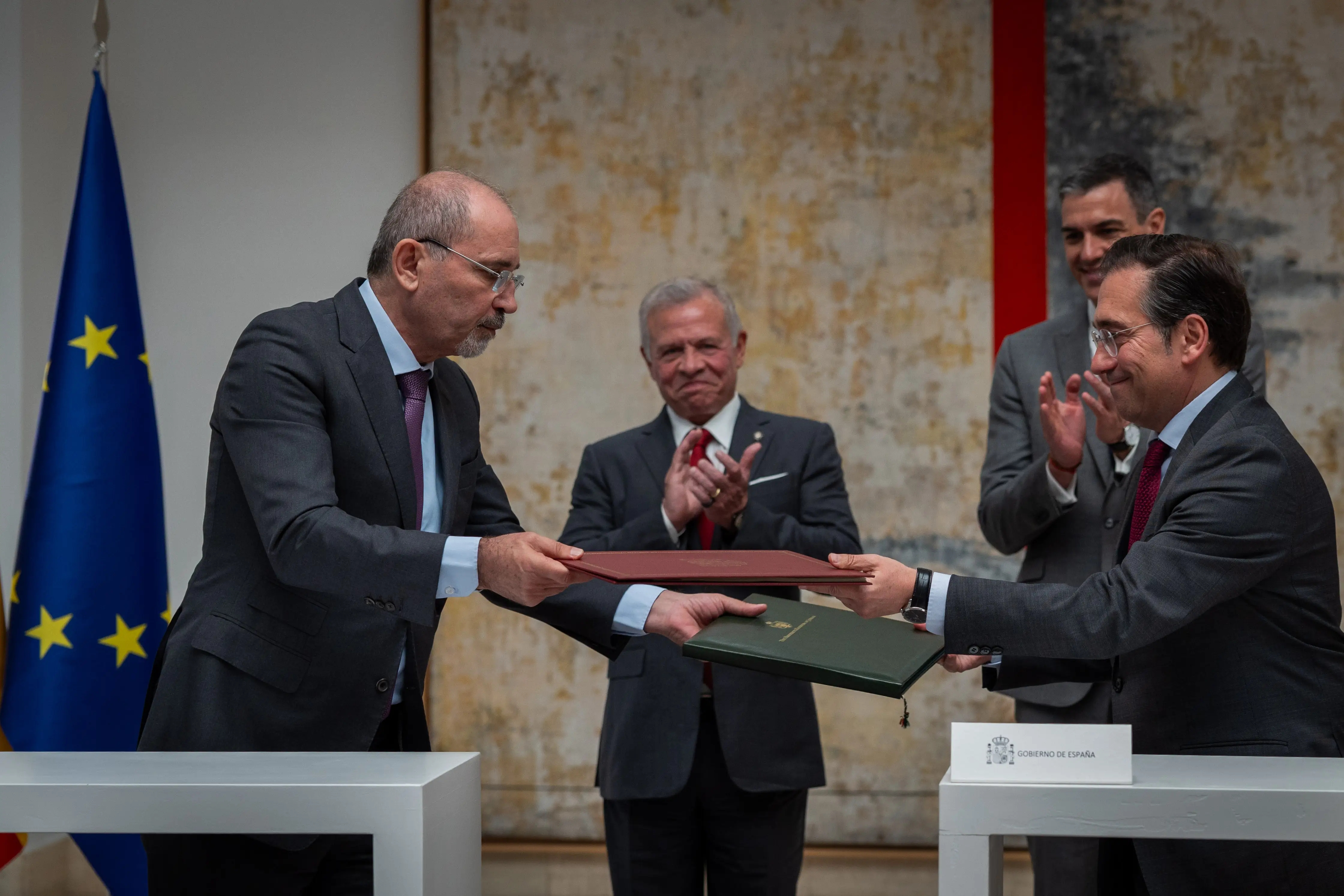 وأكد جلالة الملك خلال مباحثات موسعة مع رئيس الوزراء الإسباني، أن توقيع هذه الاتفاقيات سيعزز التعاون بين البلدين في المجالات كافة، مبينا أهمية إدامة التنسيق والبناء على العلاقات التاريخية والاحترام المتبادل والسعي لتحقيق السلام والاستقرار.
