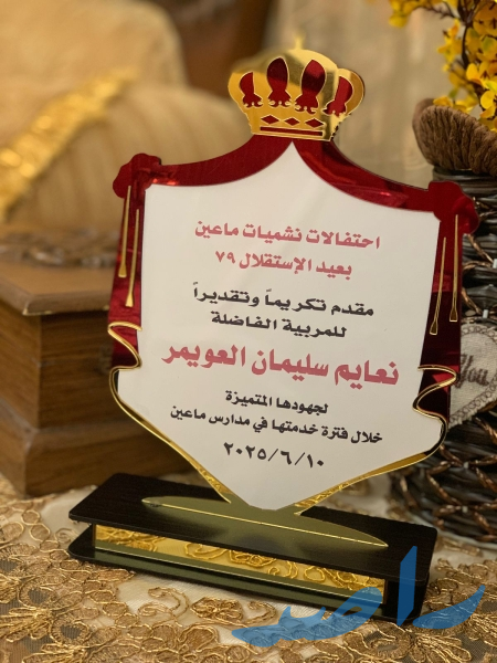 وتم خلال الحفل تكريم كوكبة من المعلمات المتقاعدات من نشميات ماعين وتكريم عدد من السيدات من أهالي الشهداء من منطقة ماعين بدروع تكريمية بهذه المناسبة الوطنية الغالية.