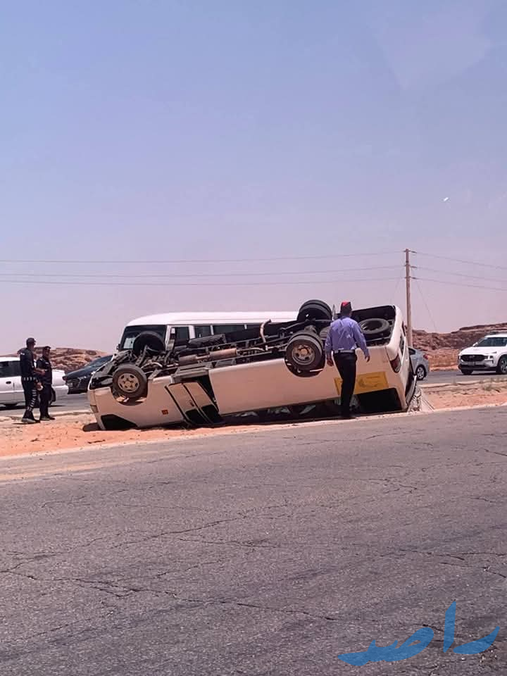 إصابة عشرة أشخاص إثر تدهور حافلة ركوب متوسطة في محافظة العقبة