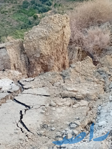2. تم تجريف الطريق سابقًا، وارتفع الكتف الأيسر من 3 إلى 5 أمتار، دون تنفيذ أعمال حماية (ربراب) أو تصريف لمياه الأمطار، ما أدى إلى انهياره.