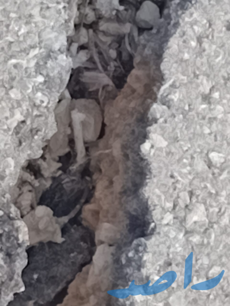 3. يُعزى السبب إلى سوء تنفيذ الطريق من المقاول، إذ تم تأسيسه على طمم وأعشاب دون قاعدة صلبة، ودون إنشاء تصريف للمياه.