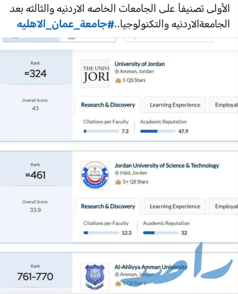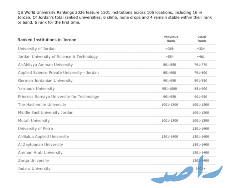 والثالثة بعد الأردنية والتكنولوجيا بتصنيف كيوأس 2026