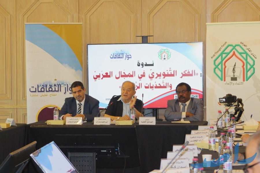 وأشار الأمين العام لمنتدى الفكر العربي د.الصادق الفقيه إلى التحديات، التي تواجّه الفكر التنويري العربي، مبينًا أنها متعددة الرؤى ومتشعبة في ذاتها، حيث تتصارع التيارات التقليدية بشكل مستمر مع زخارف التنوير وتداعياته، التي تؤثر بشكل مباشر على مسارات الفكر والمجتمعات العربية، مؤكدًا ضرورة وجود منابر فكرية حرة للنقاش وتبادل الآراء المختلفة، الأمر الذي يسلط الضوء على أهمية العمل الجماعي والشامل لتجاوز الحدود الجغرافية والفكرية، وتشكيل رؤية مستقبلية تتسم بالشمولية والتنوع تساهم في بناء فكري عربي تنويري.