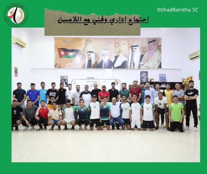 وأكد المدير الفني الكابتن مراد الحوراني في كلمته خلال الاجتماع أن فريق اتحاد الرمثا يُبنى على أبناء المدينة وروح الانتماء، مشددًا على أهمية وقوف الجماهير خلف الفريق، واصفًا إياهم بـ”الرقم الصعب” والداعم الحقيقي لمسيرة النادي.