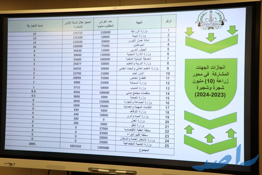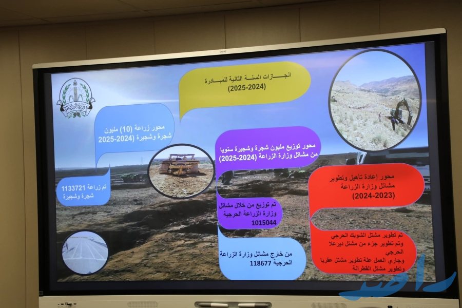 و استعرض المجتمعون ما تم إنجازه خلال الموسمين الزراعيين 2023–2024 و2024–2025، حيث تم زراعة ما مجموعه 2,155,273 شجرة، وذلك من خلال جهود جماعية وتنسيق مشترك بين كافة الجهات الشريكة في المبادرة، من وزارات ومؤسسات رسمية وهيئات محلية ومجتمعية.