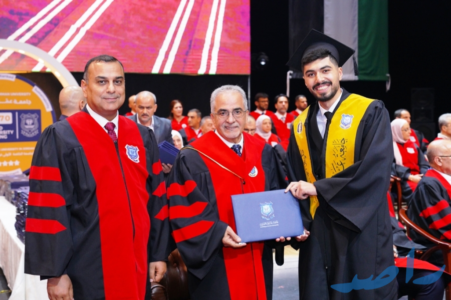 رعى الاستاذ الدكتور ساري حمدان رئيس جامعة عمان الاهلية مساء أمس 23-7-2025 على مسرح الأرينا احتفال الجامعة لليوم الثاني بتخريج طلبتها للفصل الثاني 2024-2025 من الفوج (32) لكليات " الصيدلة ، العلوم الطبية المساندة ، التمريض ، تقنية المعلومات ، العمارة والتصميم ، الهندسة ، التكنولوجيا الزراعية " بحضور نائب رئيس الجامعة أ.د. احمد حمدان ومساعد الرئيس لشؤون الاعتماد والجودة والتخطيط الدكتورإياد شعبان والسادة العمداء وأعضاء الهيئة التدريسية وعدد من أعضاء الهيئة الإدارية وحشد كبير من ذوي الطلبة الخريجين والمدعوين .