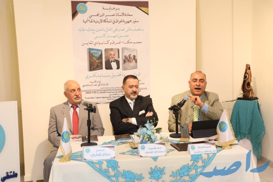 رعى سعادة الأستاذ عمر البرزنجي سفير جمهورية العراق في المملكة الأردنية الهاشمية إطلاق المؤلفين للأستاذ والموثق بسام شكري في قاعة ملتقى الصابونجي الثقافي في العاصمة عمان وبحضور نخبة من أبناء الجالية العراقية والضيوف من المجتمع الثقافي الأردني.